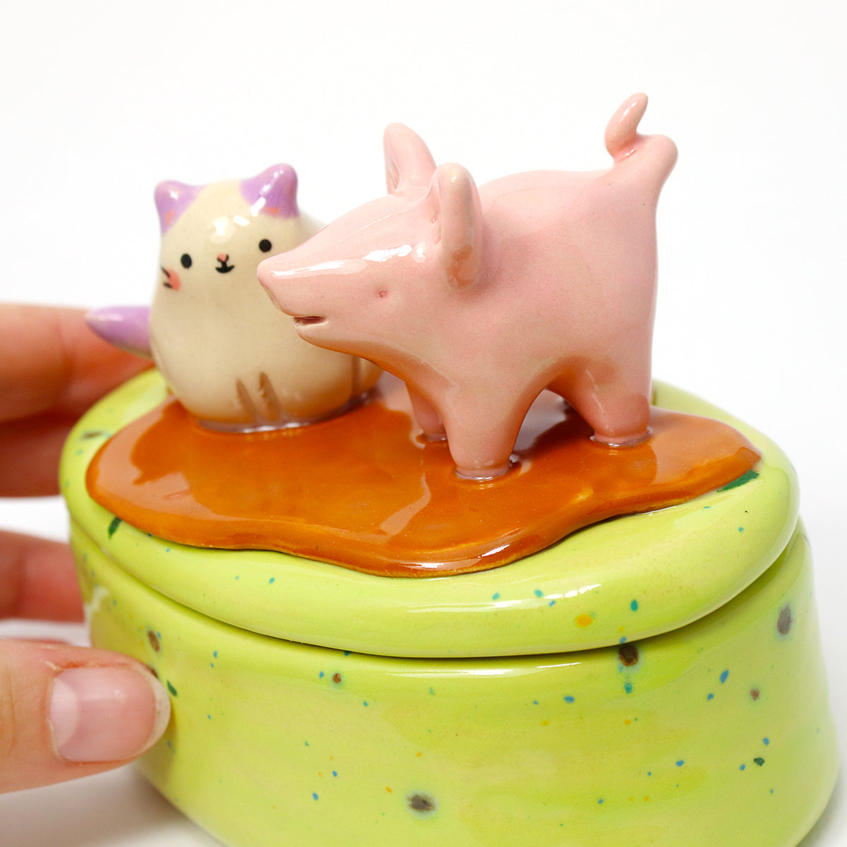 Ceramic kitty container, handsculpted and handglazed by me ♥