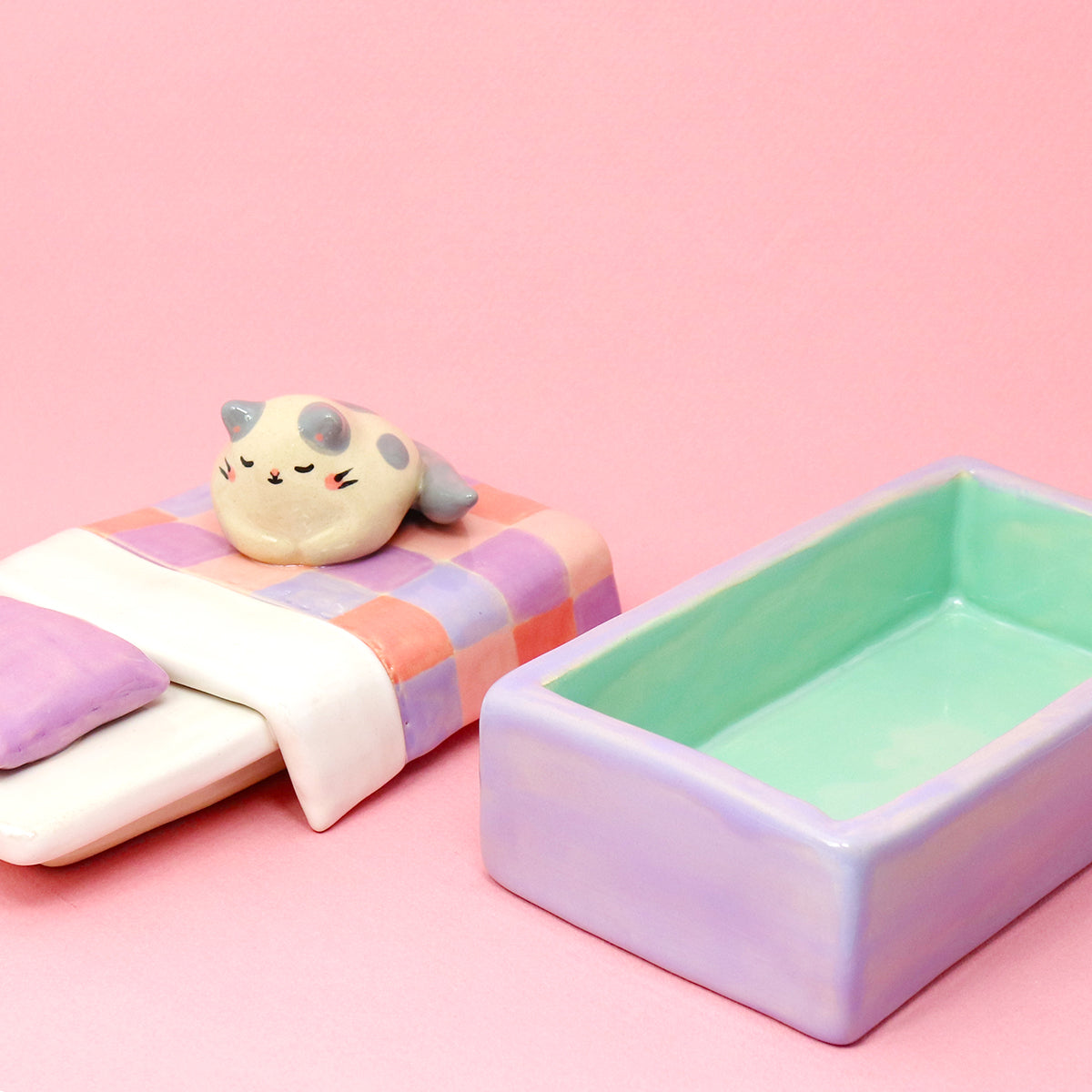 Ceramic kitty container, handsculpted and handglazed by me ♥