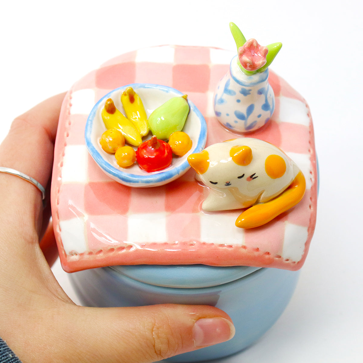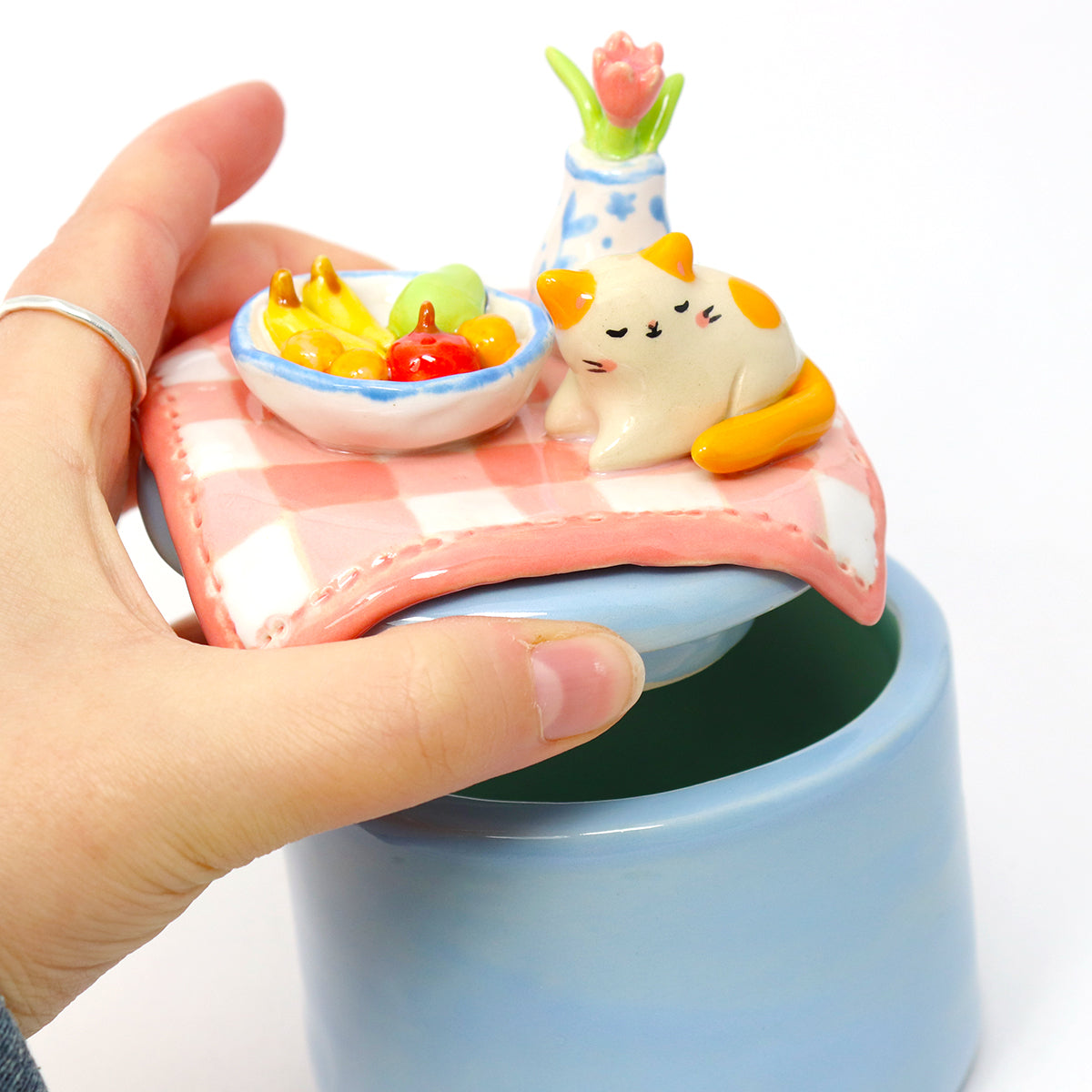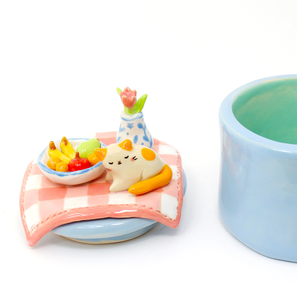 Ceramic Cat on the Table Container with Lid #3006
