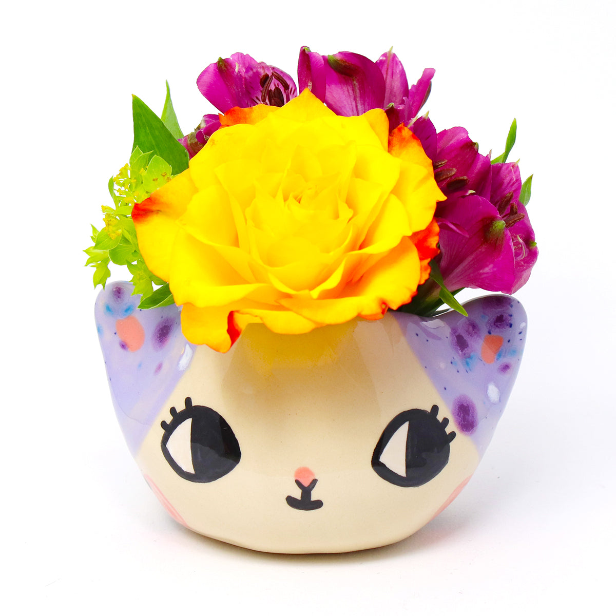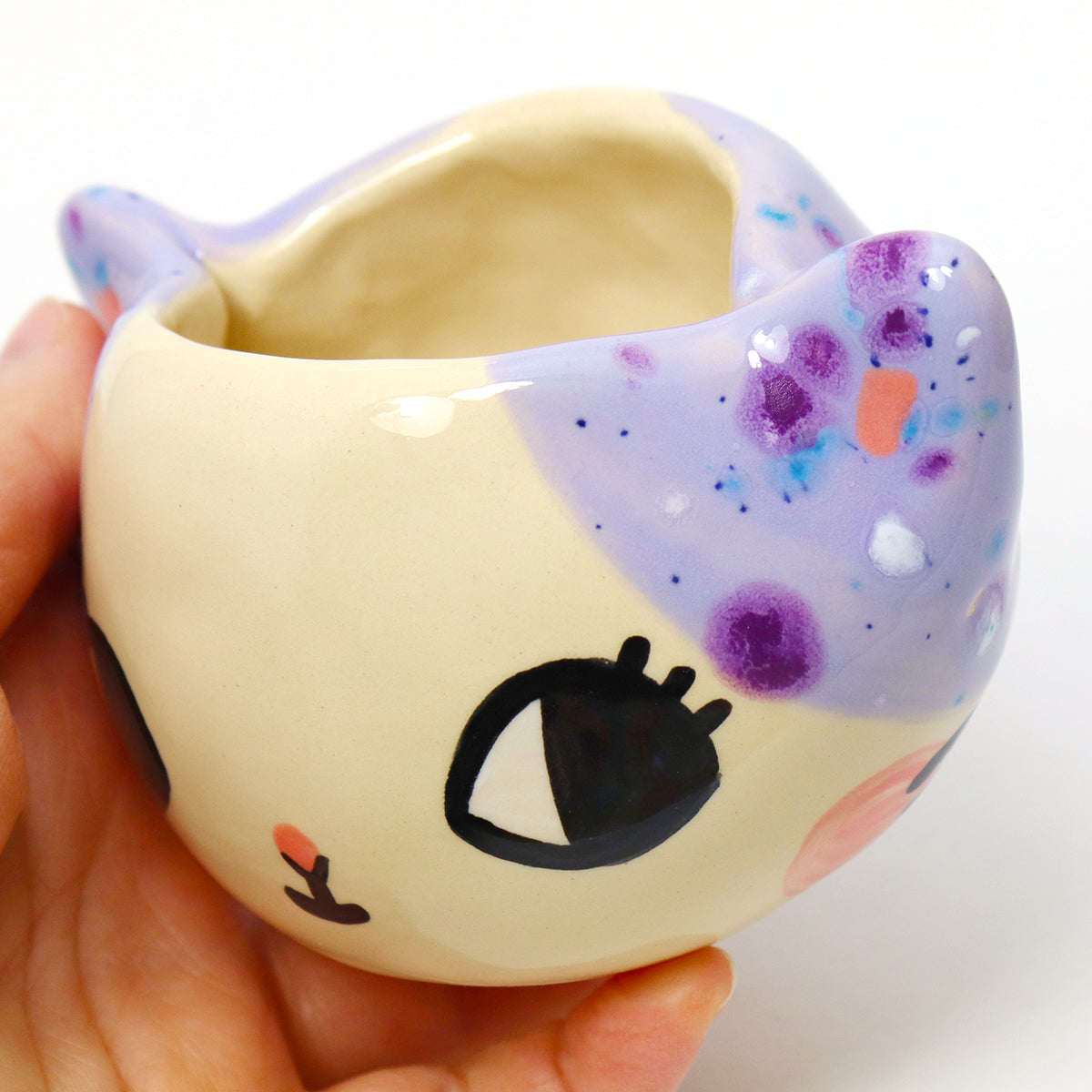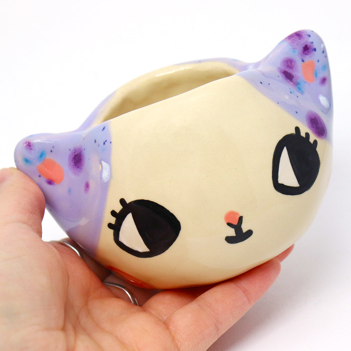 Medium ceramic kitty planter, handsculpted and handglazed by me ♥