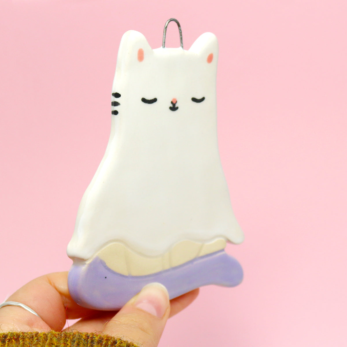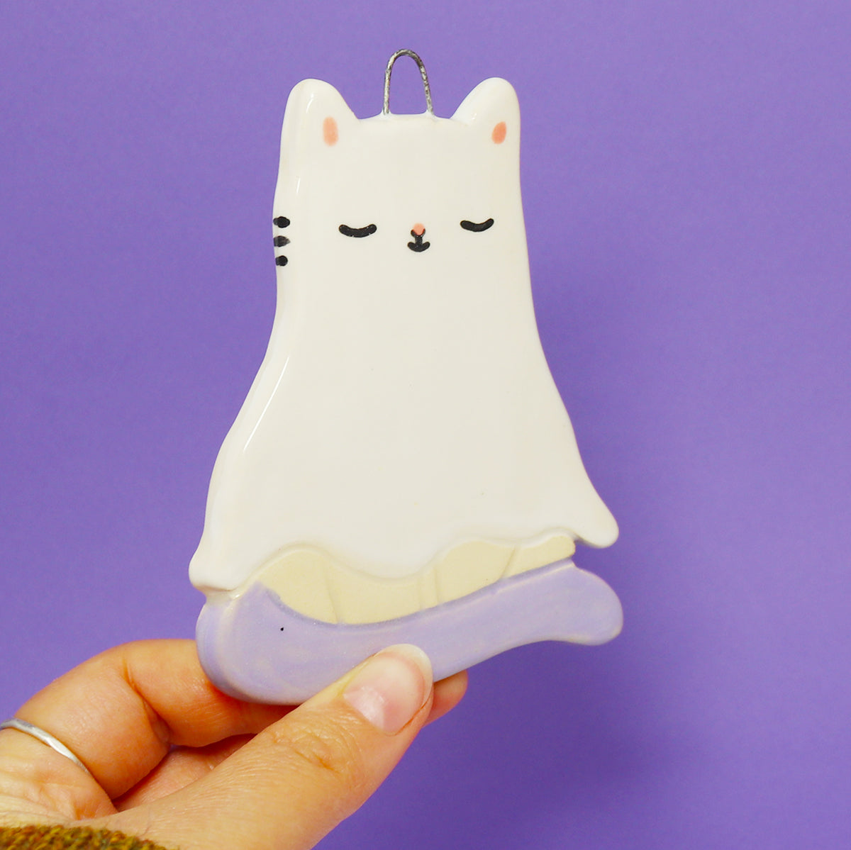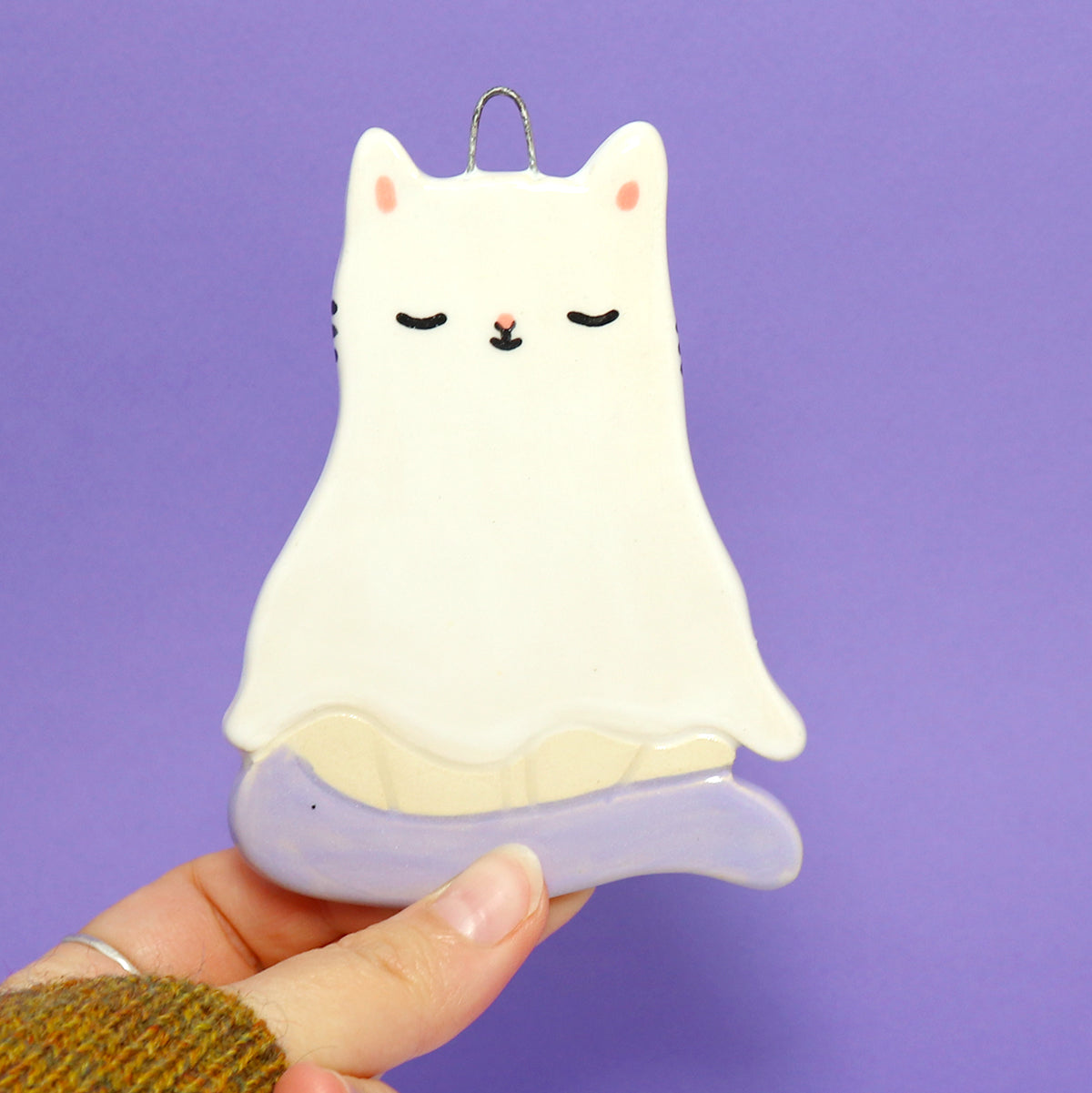 Ceramic Ghost Cat Wall Hanging #2924