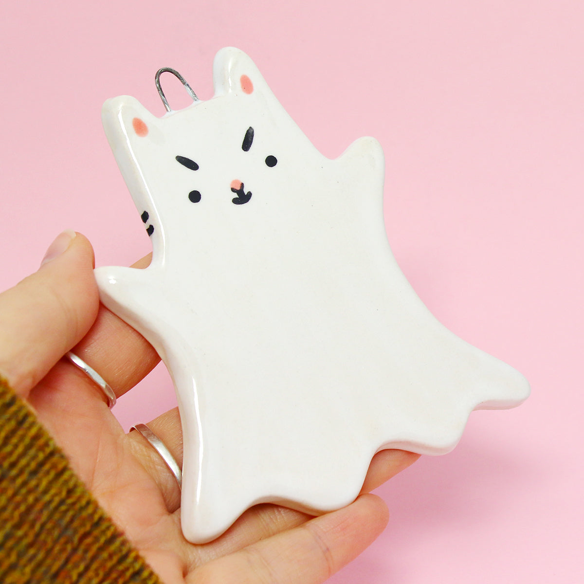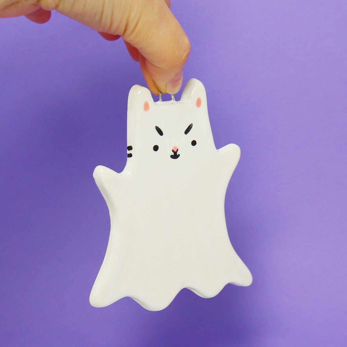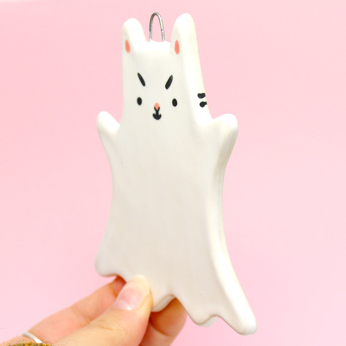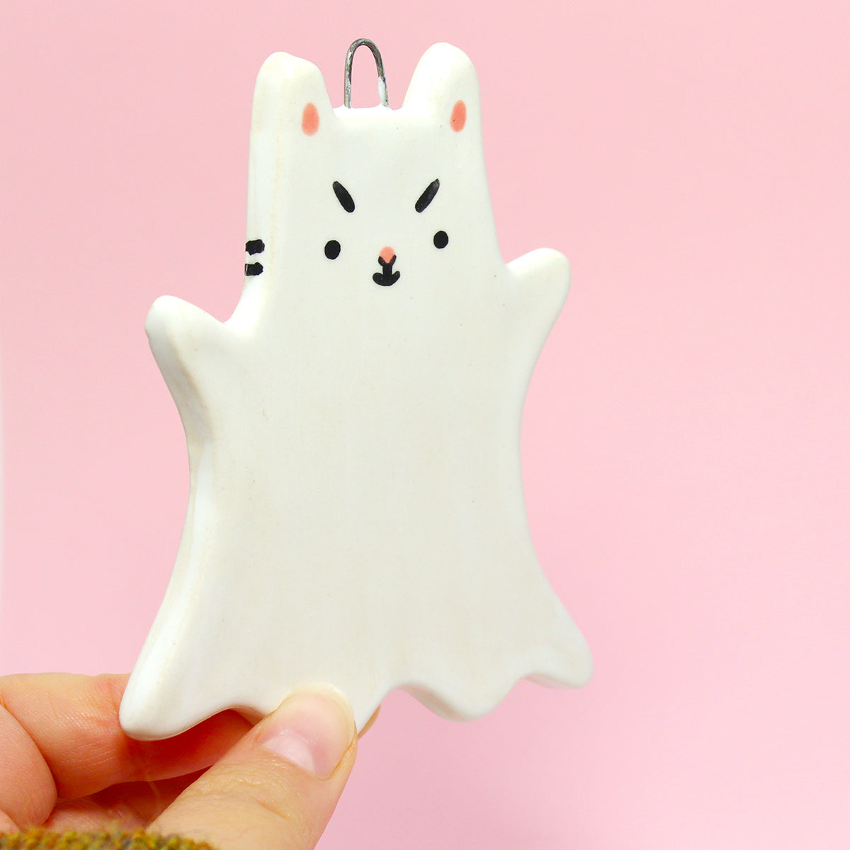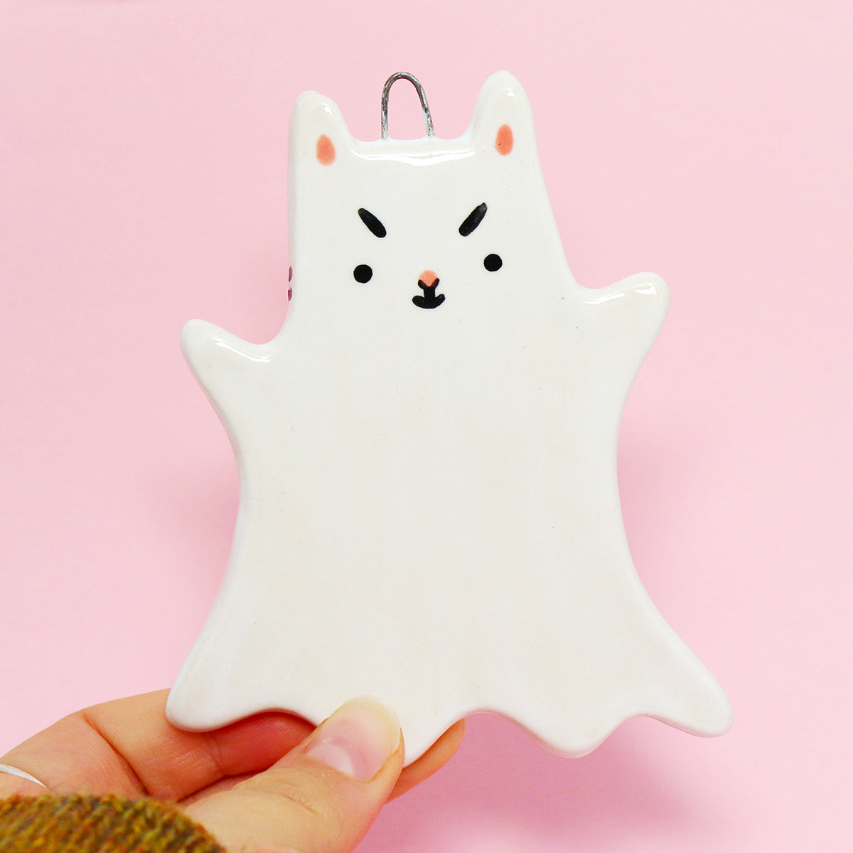Ceramic Ghost Cat Wall Hanging #2925