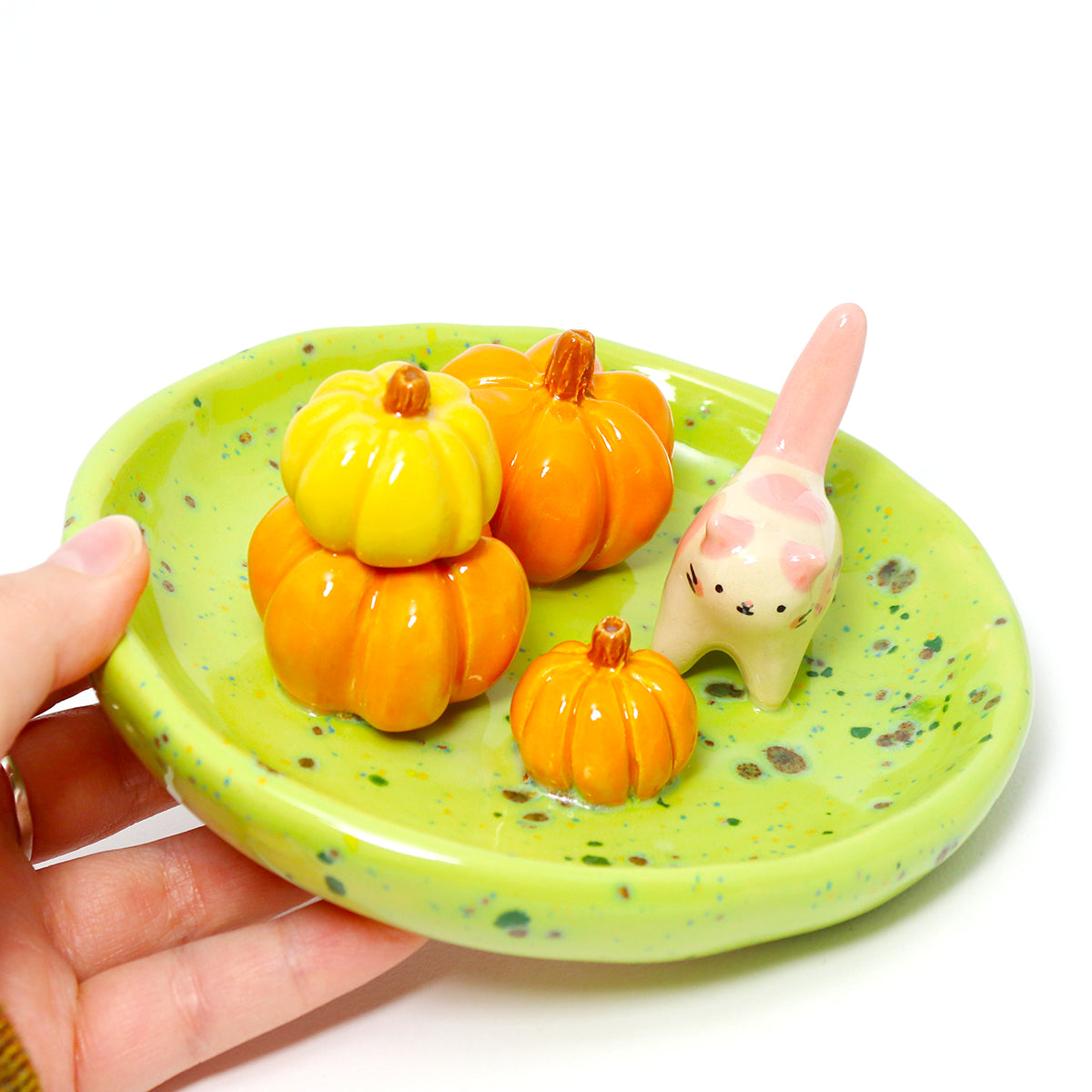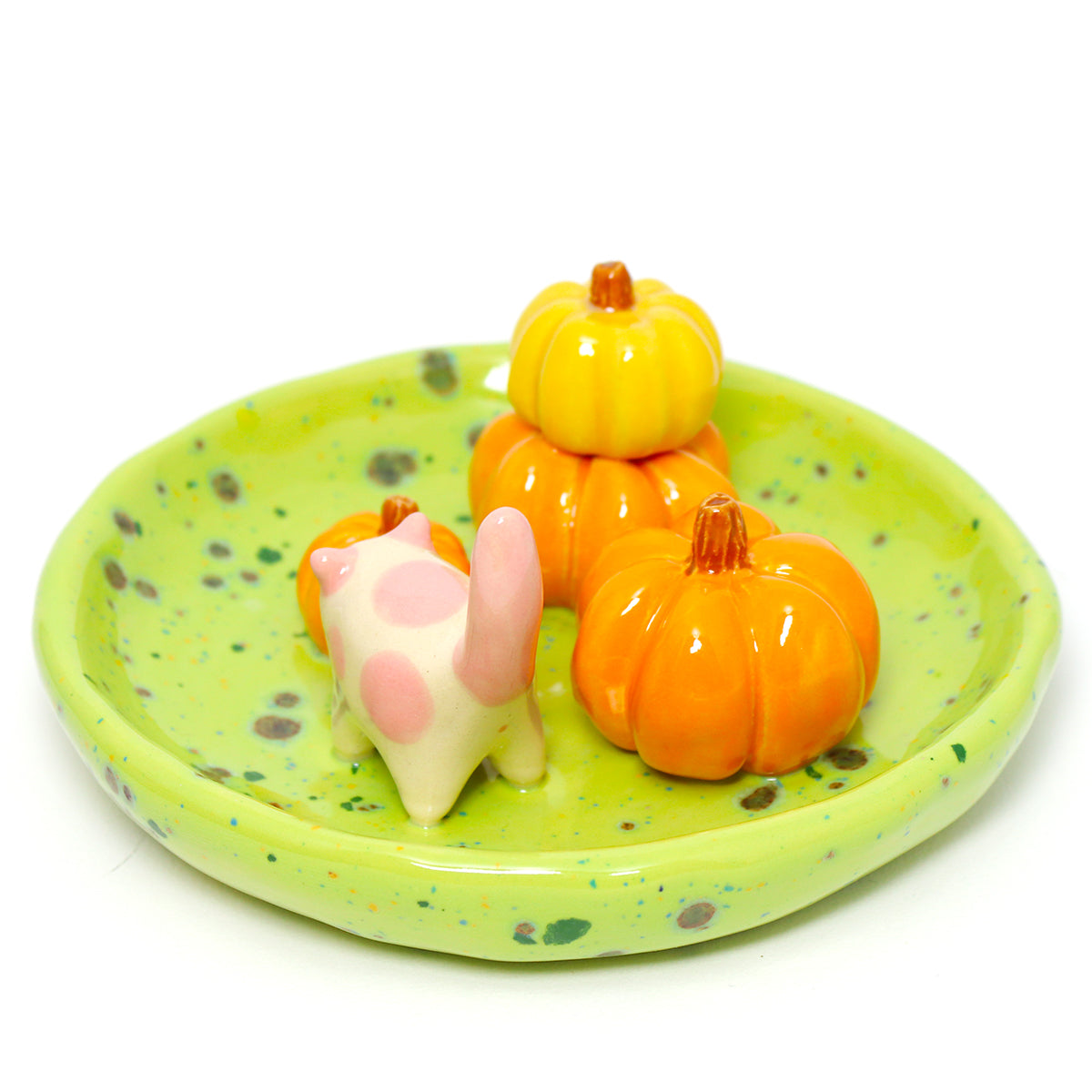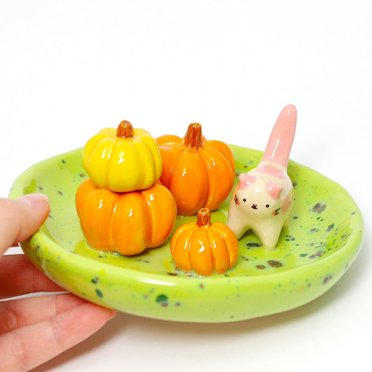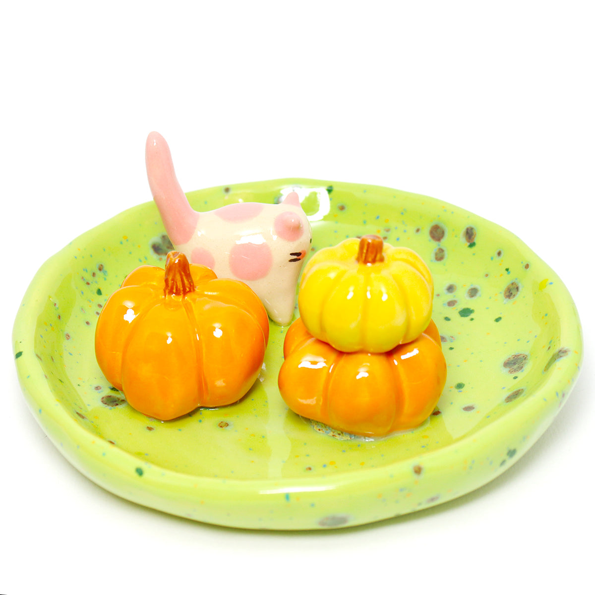 Ceramic Pumpkin Cat Trinket Dish #2879