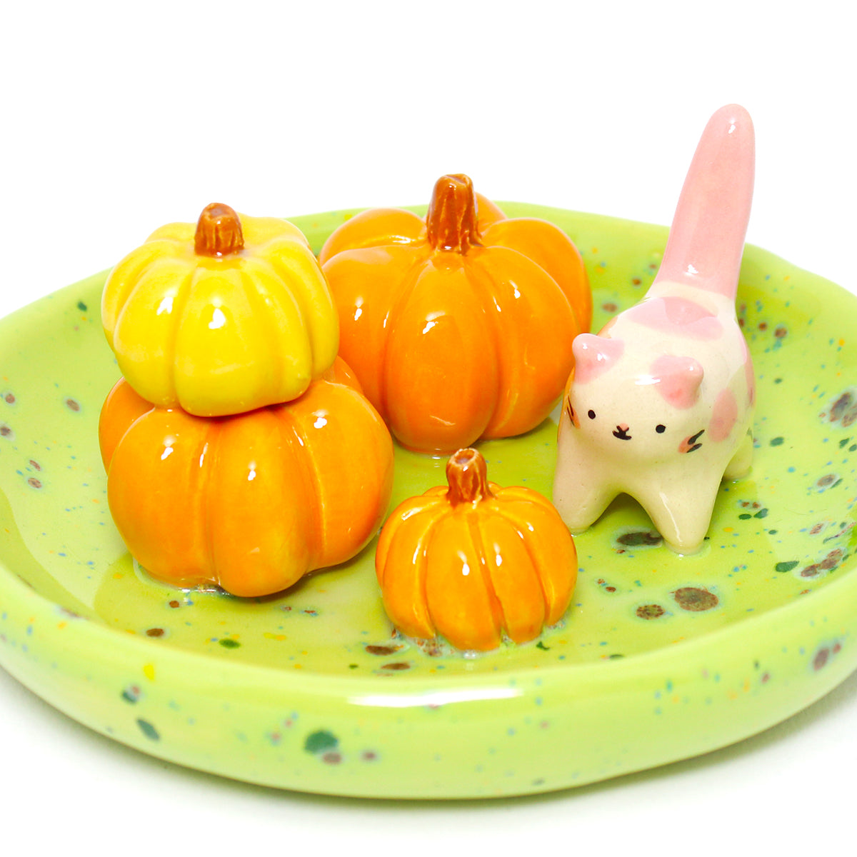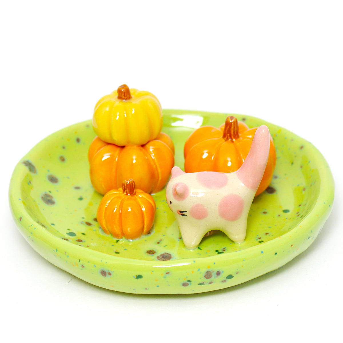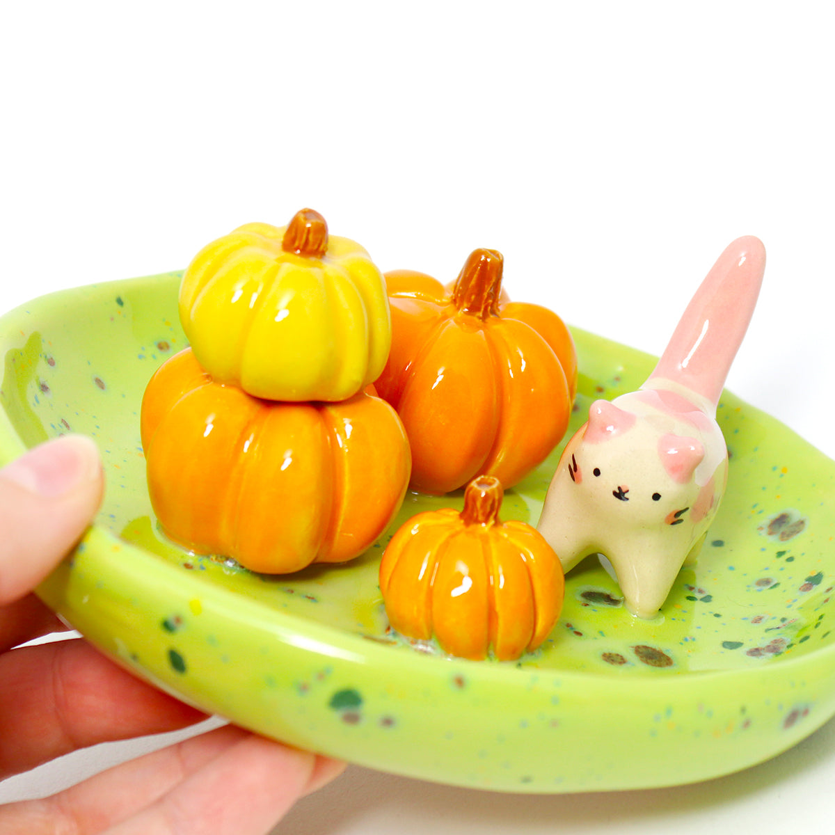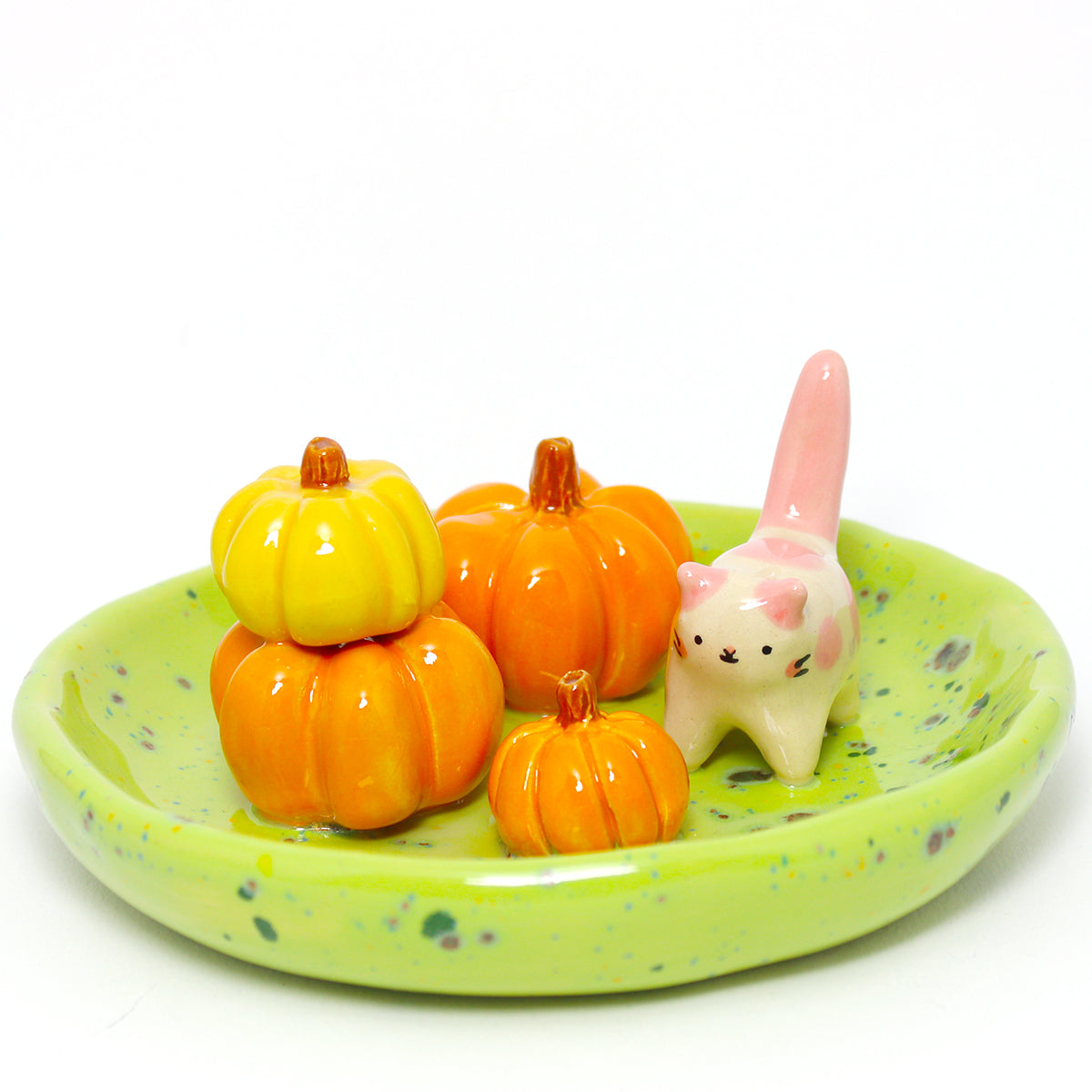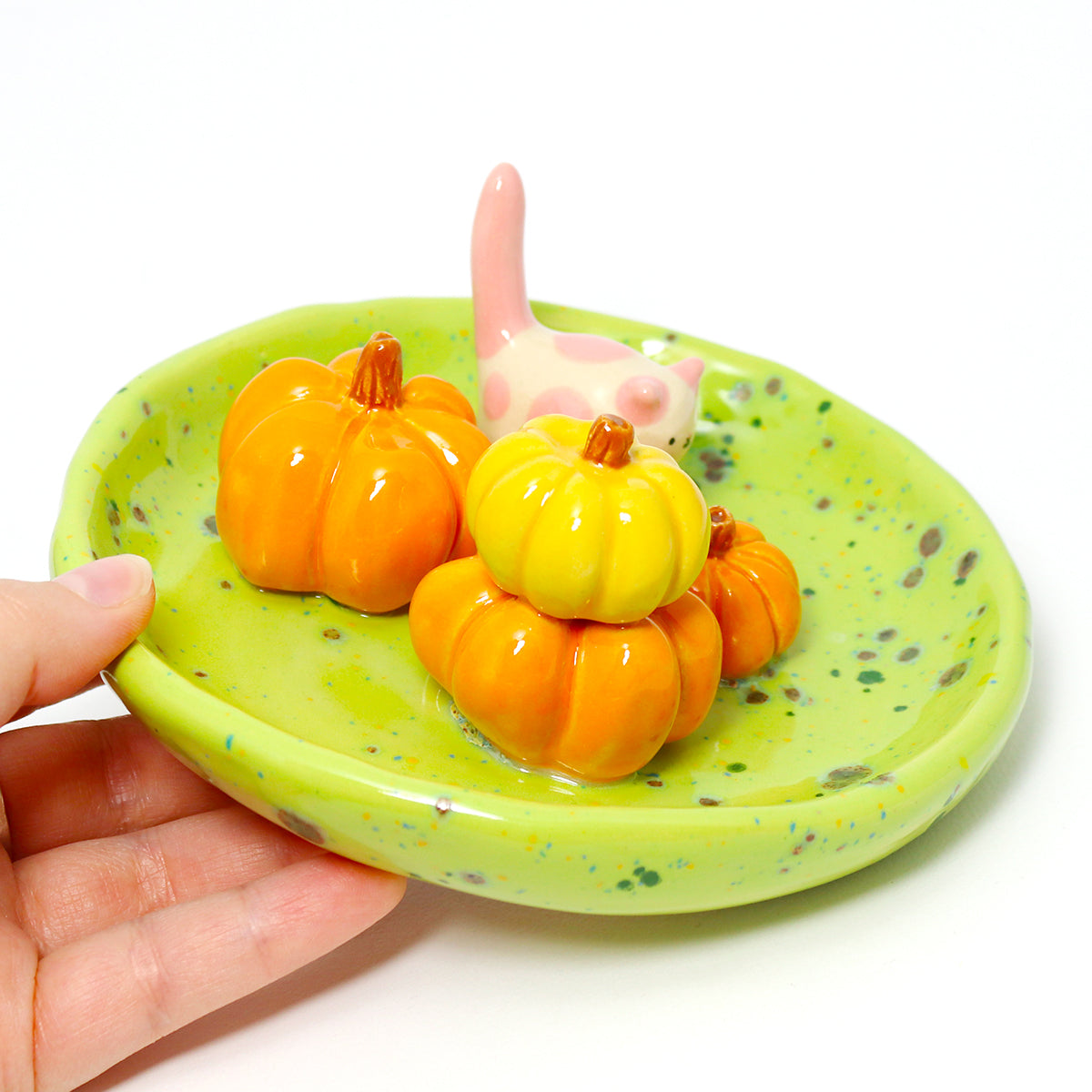 Ceramic Pumpkin Cat Trinket Dish #2879