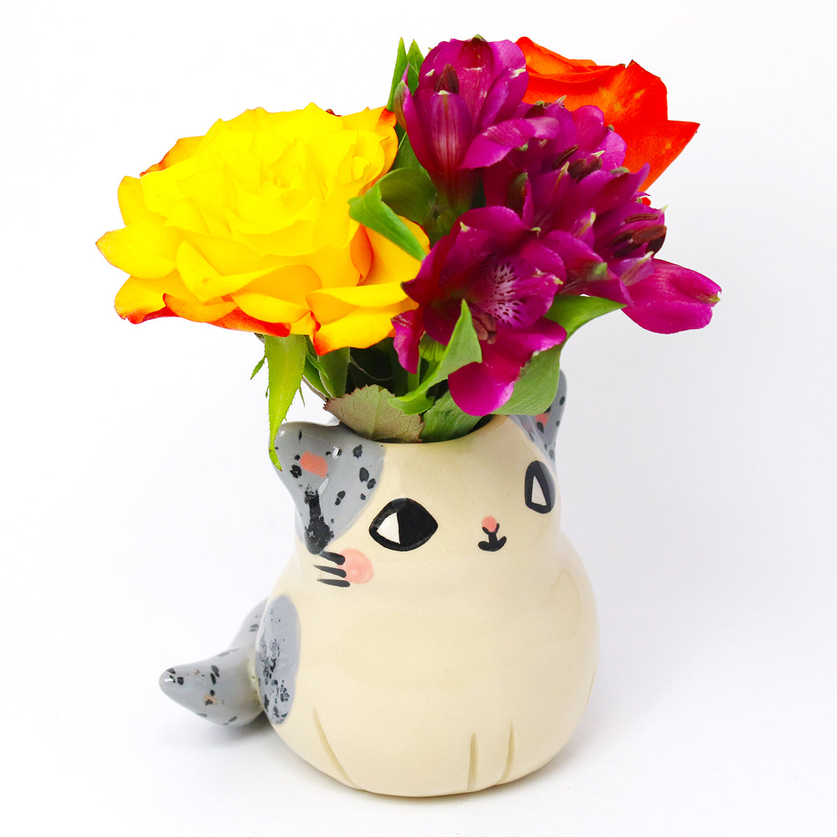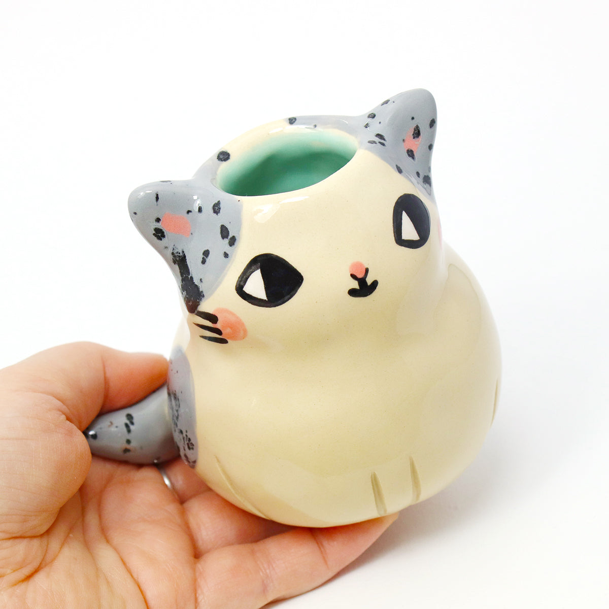 Ceramic kitty vase, handsculpted and handglazed by me ♥