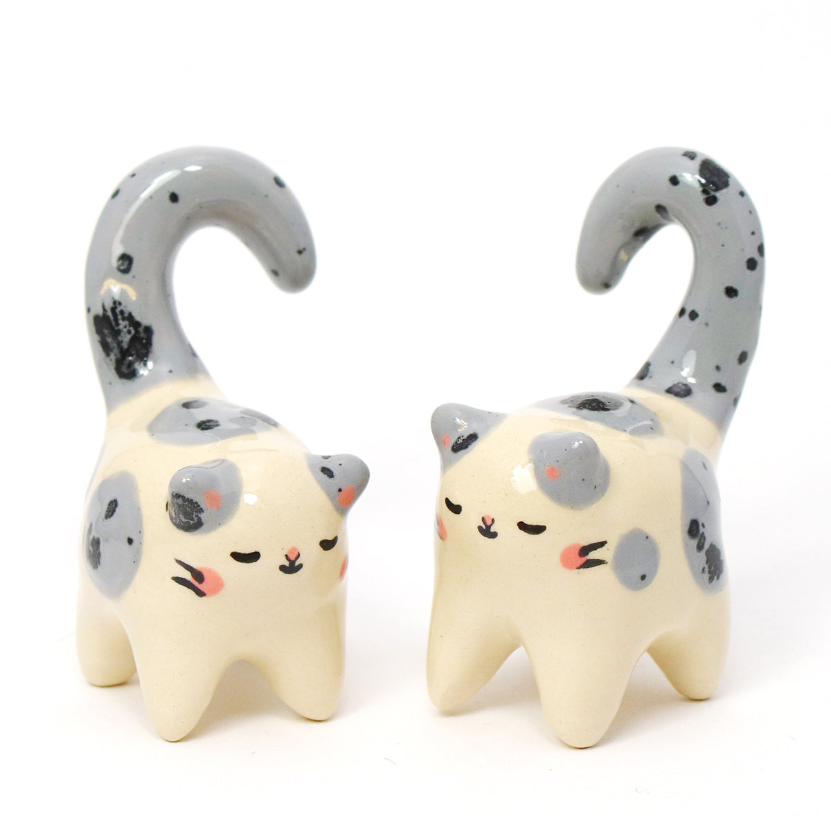 Set of two one of a kind ceramic mini figurines, handsculpted and handglazed by me ♥